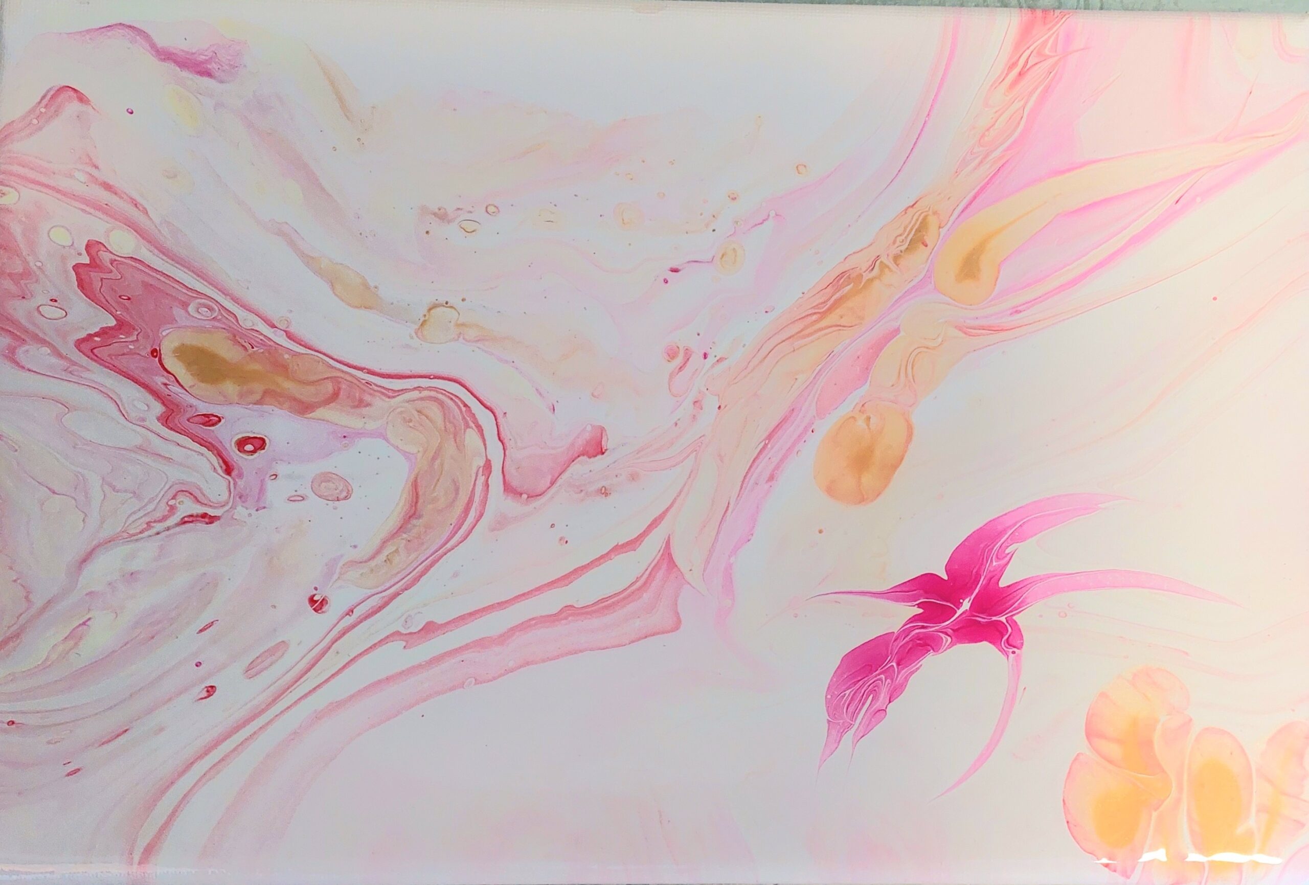 Bei Acrylpouringkunst… muss man der Seele vertrauen, dass sie… so wie im Leben… das Beste aus dem Leben macht. Die Farben kann man nur fliessen lassen und nur bedingt die Entwicklung vom Bild beeinflussen!
