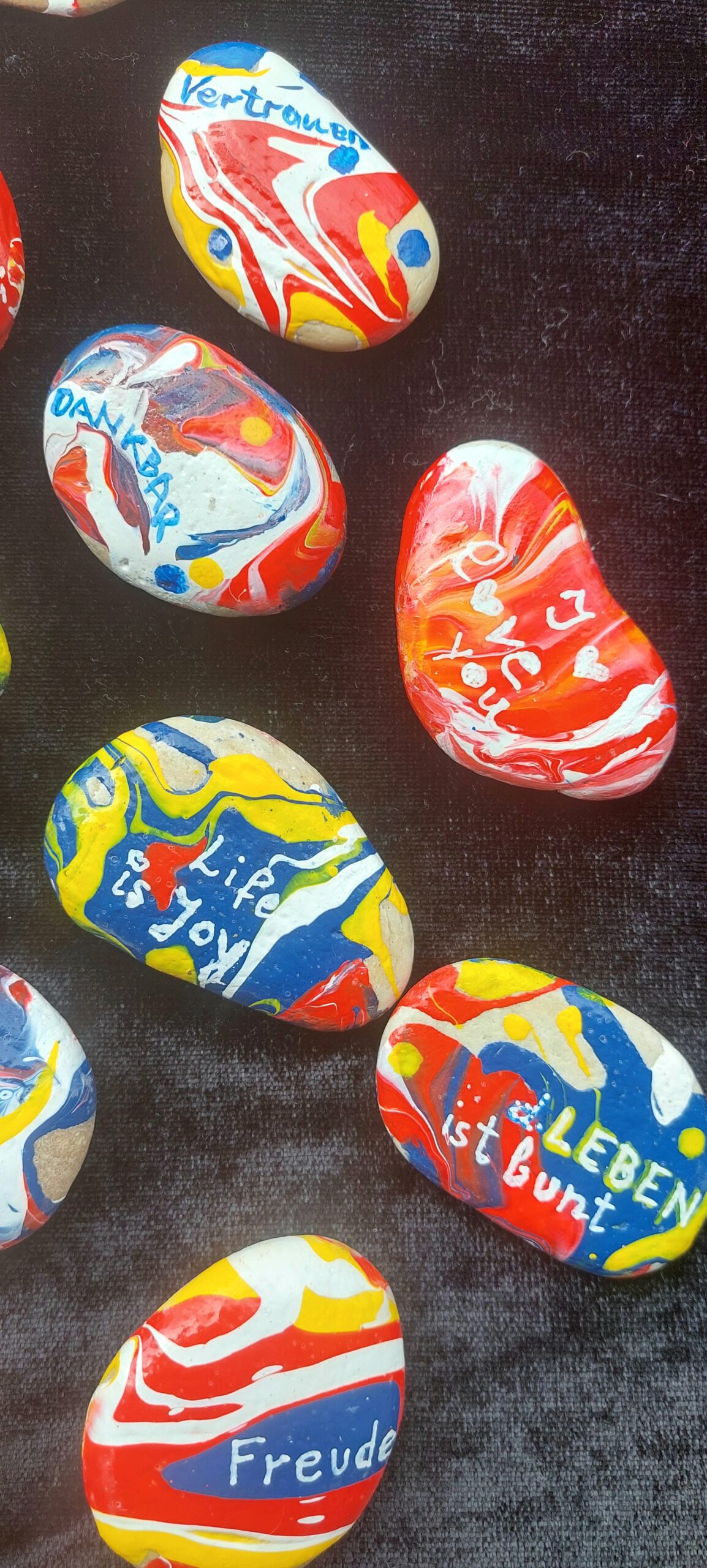 Steine mit Acrylfarbe bemalt! Mit Seelensprüchen und Seelenqualitäten beschriftet! Energetisiert!
